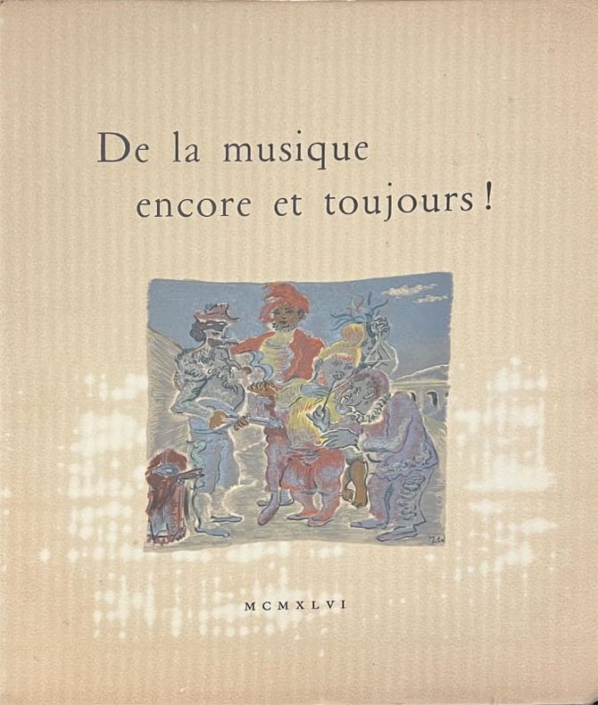 Paris, E.ditions du Tambourinaire, Collection Musicale, 1946 - Grand in-4.- Broché, couverture illustrée en couleurs et imprimée - E.dition originale - Tirage limité sur Vélin - Premier tirage des illustrations en noir et en couleurs de BRIANCHON, DIGNIMONT et Roger WILD. Textes inédits de Paul Claudel (Arthur Honneger), Cocteau (Maurice Ravel), .luard (Francis Poulenc), Mallarmé (Reynaldo Hahn).- 34-(2) pages - Bel exemplaire.