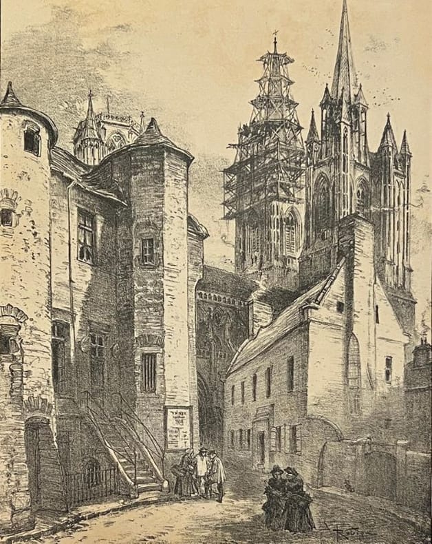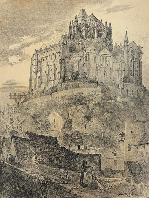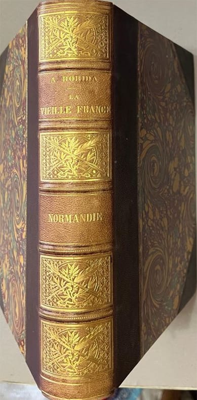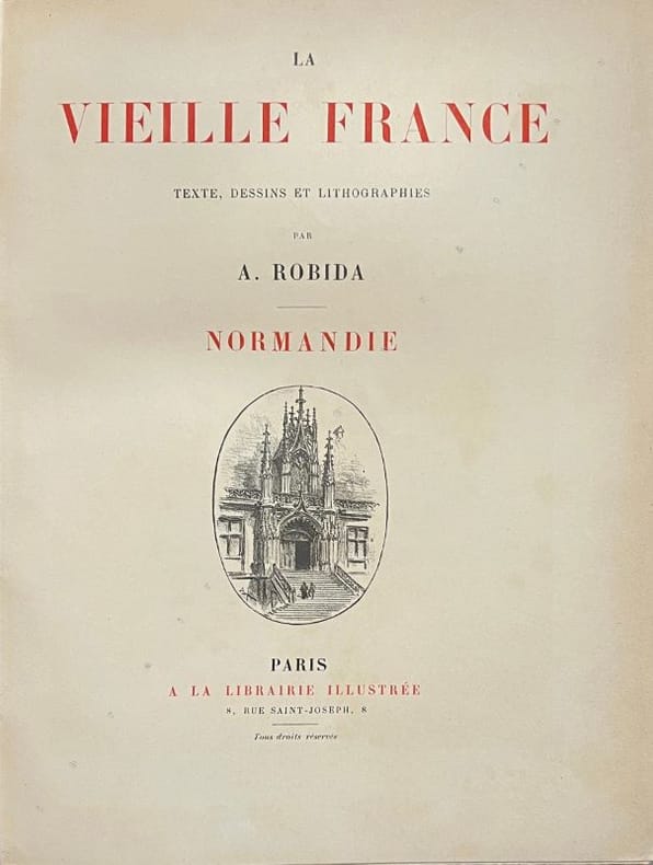 Beau parcours de la Normandie, et de ses monuments, croqués avec talent par le crayon, plein de verve et de sensibilité, d'Albert Robida. 40 lithographies hors-texte. Dos insolé, infimes taches et rousseurs.