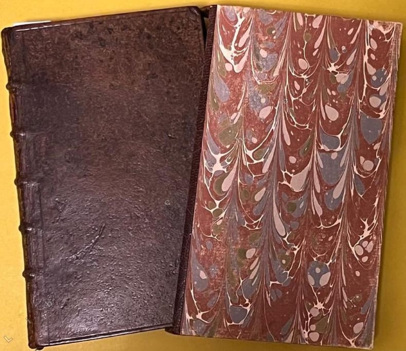 1723 1 Paris, Imprimerie Antoine-Urbain Coustelier, 1723, 3 parties reliées en 1 volume in-12, veau moucheté, dos à 5 nerfs orné de caissons avec fleurons dorés et pièce de titre en maroquin cerise, hachures sur les coupes, tranches mouchetées rouges, sous étui bordé, 112 pages, 64 pages et 56, pages.