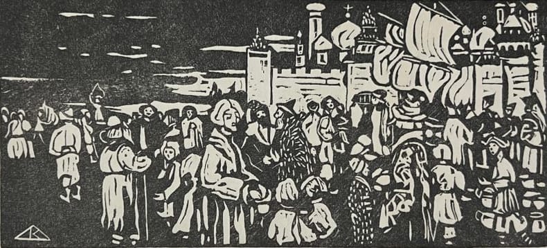 PREMIER TIRAGE. Numéro publié pour l'exposition d'oeuvres réalisées par Kandinsky de 1900 à 1910, présentée en novembre 1951 à la Galerie Maeght. Extrait du texte de l'artiste " Regard sur le passé ". 3 BOIS en couleurs et 3 BOIS en noir de KANDINSKY. Bien complet des reproductions en noir imprimées sur un feuillet recto plié en quatre, où figure également l'annonce de parution du sixième cahier de la collection Pierre à Feu consacré à Kandinsky. Bon exemplaire non coupé de l'édition originale. Bon exemplaire 0