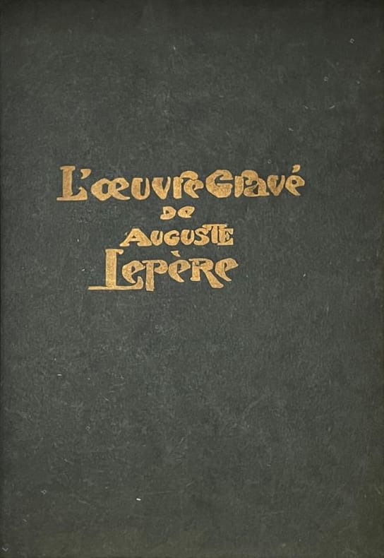 Catalogue descriptif et analytique orné de 5 gravures originales - dont une eau-forte numérotée sur Japon en frontispice et de 15 reproductions hors texte, avec une préface de Léon Bénédite conservateur du musée national du Luxembourg. Ce catalogue recense et décrit l'oeuvre gravé à l'eau-forte, lithographié, bois, livres, publications diverses d'Auguste Lepère considéré comme le "rénovateur" de la gravure. Les fiches du présent catalogue furent commencées chez Lepère en la Maison "Les Pins" pendant l'automne 1901, puis continuées sur les Presses de Dugas. Tirage limité à 125 exemplaires, timbrés du monogramme de l'auteur. Un des 100 exemplaires mis dans le commerce. Belle édition sur grands papiers. Infimes usures et dos légèrement insolé. Envoi autographe de Lepère.In-fine sont joints : - Ramiro "Louis-Auguste Lepère peintre-graveur" orné de textes et de 3 hors-texte.-Roger-Marx (Claude). "Auguste Lepère". Paris, Gazette des Beaux-Arts, 1919, faux-titre, 4 hors-texte. Avec une gravure sur bois hors-texte sur Japon, une eau-forte originale hors-texte, 2 reproductions contre-collées hors-texte.