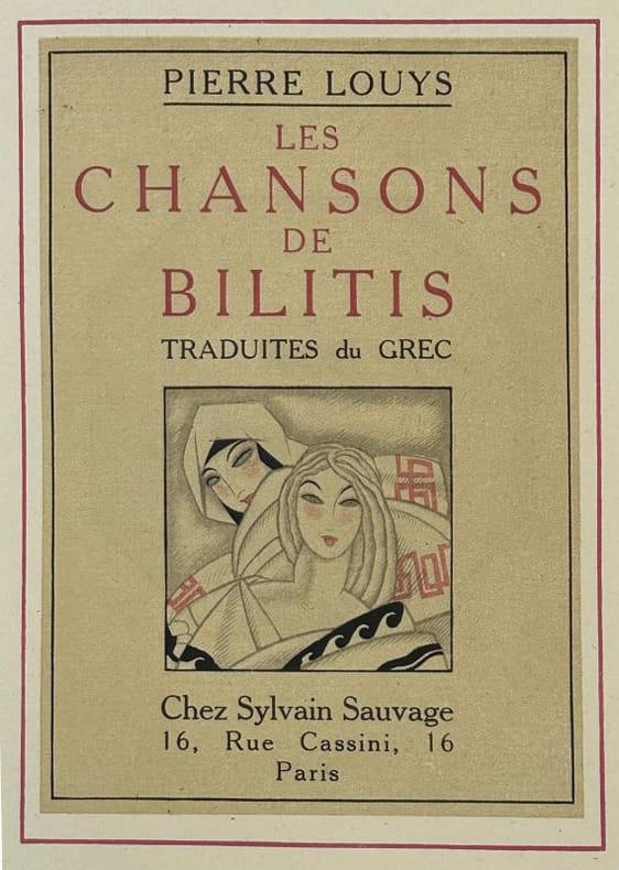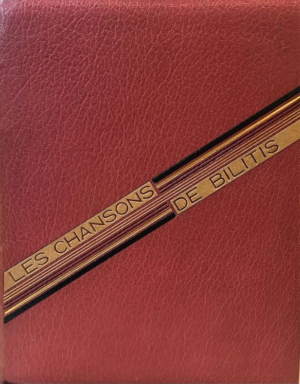 Les Chansons de Bilitis est une uvre poétique publiée en 1894. L'ouvrage se donne comme une traduction du grec, due à Pierre Louÿs, de l'uvre d'une poétesse antique du nom de Bilitis, à laquelle sont attribués ces poèmes érotiques et passionnés. L'ouvrage est précédé d'une Vie de Bilitis, retracée par le traducteur et accompagnées de plusieurs pages de notes. En fait, les poèmes sont bien de la main de Pierre Louÿs. Merci de nous contacter à l'avance si vous souhaitez consulter une référence au sein de notre librairie.