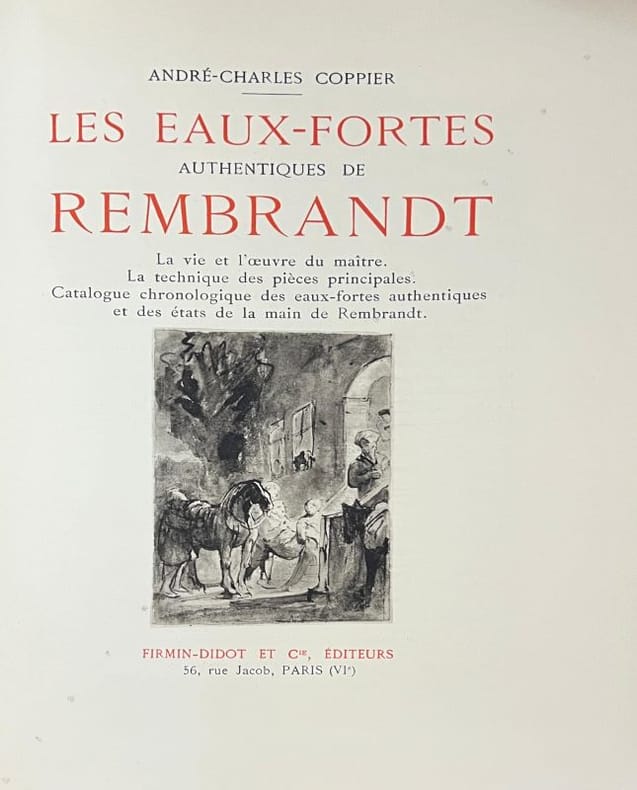 Édition originale de cette belle étude documentée sur l'oeuvre gravée de Rembrandt et richement illustrée de reproductions en noir. Nous joignons deux lettres manuscrites de l'auteur. Brochage fragile. Exemplaire sur Alfa teinté.