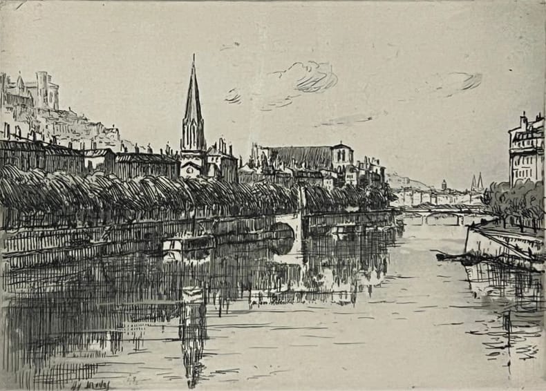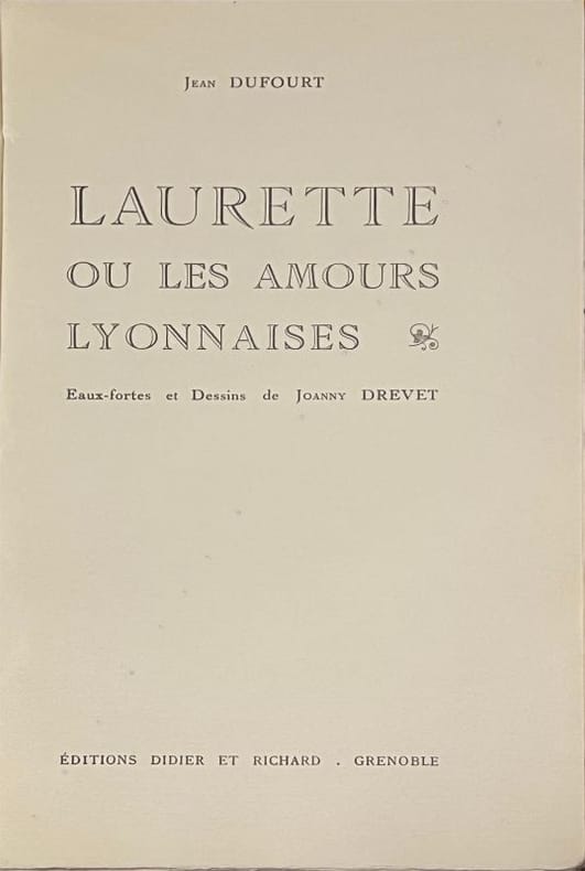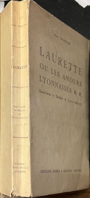 Promenade initiatique dans le Lyon des années 30. Frontispice suivi de 18 eaux-fortes et de nombreuses illustrations in texte. Dos fragile en tête et en queue. Tirage limité à 250 exemplaires. Exemplaire sur Rives. In Monod (3993).