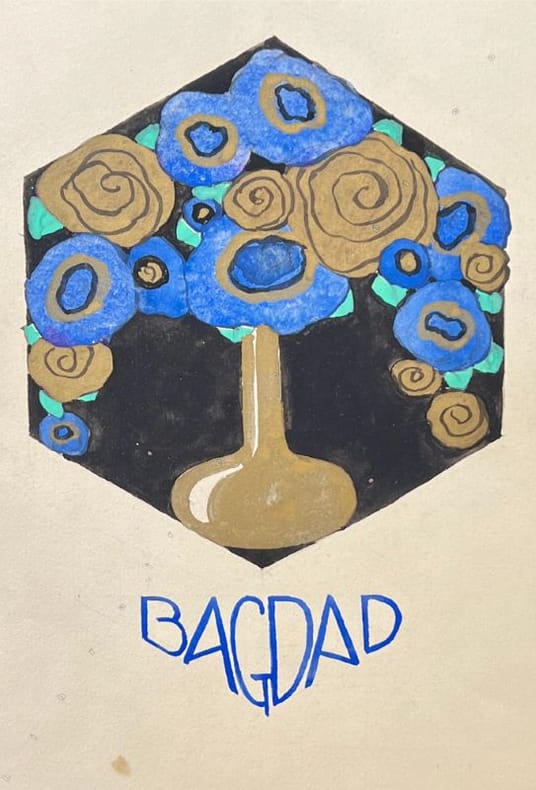 Étude florale Art-déco à 4 mains des époux Roy - Grappe, certainement à l'initiative de Charlotte Grappe-Roy (1890-1930). Les jeunes mariés arrivent au coeur d'une fête artistique et créative initiés dans la Gazette du Bon Ton et culminant en 1925 lors de l'Exposition des Arts Décoratifs. Sylvain Sauvage (Baume-les-Messieurs, Jura, 1888-1948 Paris), de son vrai nom Félix Roy, fut élève aux Beaux Arts. Peintre, graveur, illustrateur et éditeur français. Il débuta dans les années 20 en illustrant des ouvrages pour Kieffer, puis Mornay, Jonquières et Crès, avant de devenir éditeur et collabora à des revues telles que la Gazette du Bon Ton, la Baïonnette ou Fantasio. Il fut le directeur de l'École Estienne dès 1934 et ce, jusqu'à sa mort. Il exposa au Salon des Artistes Décorateurs. Collection Michel Lagarde - Julien Chaudet. Référencée au catalogue Saugier pages 26-31.