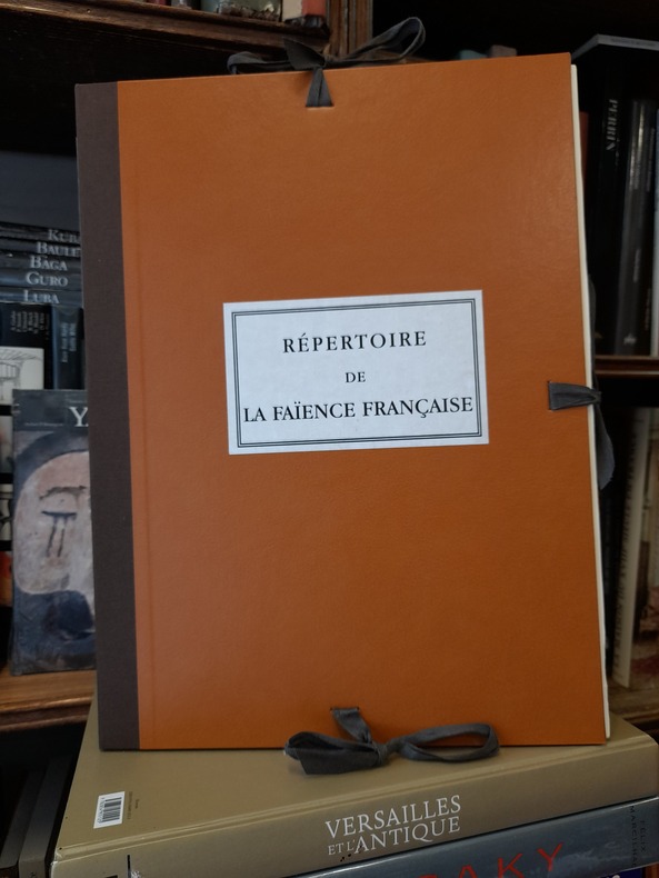 Bien complet des 610 planches, chacune protégée par une serpente légendée (124+124+124+124+114). Tirage limité à 330 exemplaires numérotés. Les volumes de planches portent le numéro 159, celui de texte 175. 2 feuillets volants de l'éditeur joints. "[Chompret] était, en France, le maître incontesté de l'histoire de la céramique. Le Répertoire de la Faïence française, digne de la production faïencière de notre pays, renferme toutes les connaissances sur ce sujet" [Louis Cotinat, in Revue d'histoire de la pharmacie n° 45, 1957].