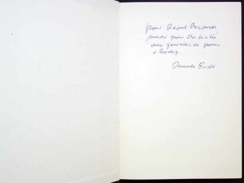 Médium In-8°, reliure pleine toile chocalat sobrement sérigraphié en doré sur la tranche et le premier plat, l'ensemble sous élégante jaquette papier ornée d'une illustration (trois femmes triomphales), 314 pages, Édition partiellement Originale de la traduction française enrichie d'un Envoi Autographe de Renate FINCKH - Bel exemplaire sous tous rapports, complet de sa jaquette (un peu passée).