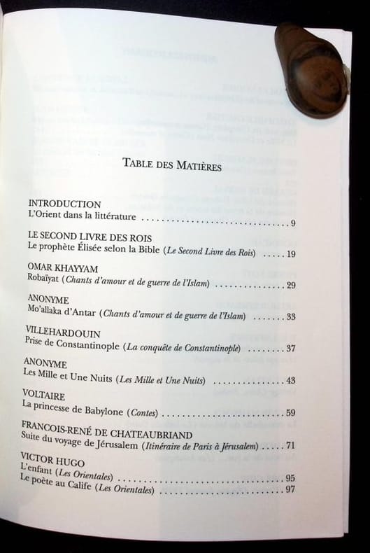 L'Orient dans la littérature :Omar Kayyam, Villehardouin, Voltaire, Chateaubriand, Charles NodierGauthier, Gobineau, Laurence, Genet, Pierre Loti, Rimbaud, Nizan,Naguib Mahfouz, Jeanne Faivre d'Arcier.Epuisé. Bon Etat Franco de port France jusqu'à 29 euros iclus. PAYPAL immédiat. MONDIAL RELAY pour : FRANCE, Portugal, Pologne, Espagne, Allemagne, Autriche, Pays Bas, Luxembourg, Italie, Belgique. Toutes les étapes sont accompagnées. Achat, estimations et listages (Papiers, Archives, monographies, arts et métiers, sciences humaines et bibliophilie) France / Suisse (sur rdv).