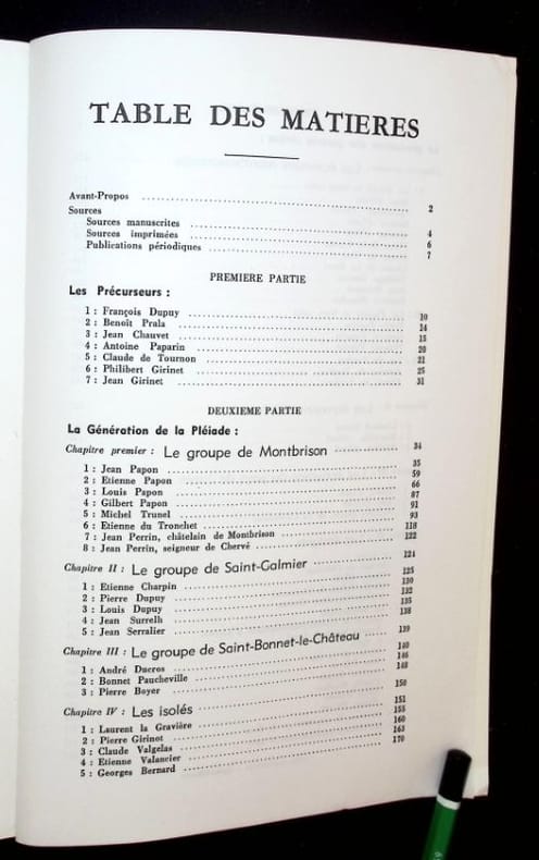 Centre d'Etudes Foréziennes Fort dense et pondéreux vol. in Octavo, br. , couverture souple vert d'eau sous jaquette illustrée (portrait en médaillon ), 453 pages, important index nomine sur deux colonnes ( 441-451), carte du Forez litt. au 16e. , tableaux généalogiques. Volume en belle condition nonobstant de menus défauts (coins du second plat légèrement en accordéon). Cf clichés ci-joints.