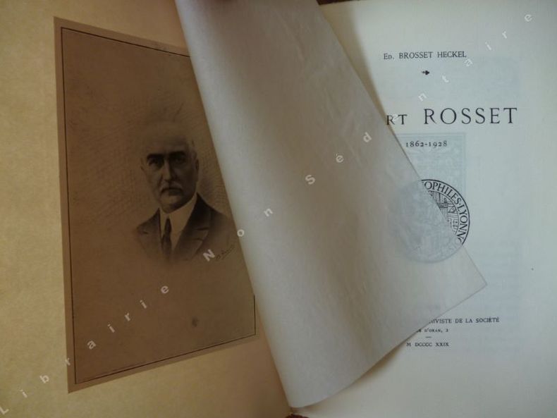 Lyon, Société des Bibliophiles Lyonnais, Chez le Trésorier-Archiviste de la Société, 1929 - In-8°, broché, couverture souple coquille d'oeuf rempliée et titrée en noir, monogramme de la maison, portrait frontispice sous serpente, 18 pages et une typo couchée sur un beau vergé à la cuve.EX LIBRIS DE Rosset à pleine page devant celle du faux titre.