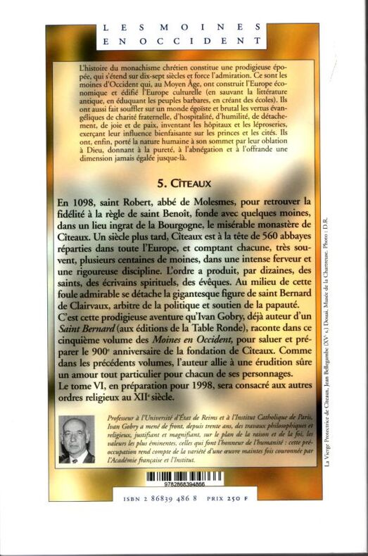 François-Xavier De Guibert, 1997 - Fort volume in octavo, broché, élégante couverture souple glacée ill, 638 pages - Importante généalogie de l'ordre de Cîteau, localisation des monastères (12 cartes), Toponymie cistercienne, Chronologie, calendrier Cistercien.. Excellente condition.