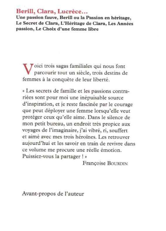 Titres de ce volume : Une passion Fauven Berill ou la passion en héritage, Le secret de Clara, L'Héritage de Clara, Les Années Passion, Le choix d'une femme libre . - Bon Etat Franco de port France jusqu'à 29 euros iclus. PAYPAL immédiat. MONDIAL RELAY pour : FRANCE, Portugal, Pologne, Espagne, Allemagne, Autriche, Pays Bas, Luxembourg, Italie, Belgique. Toutes les étapes sont accompagnées. Achat, estimations et listages (Papiers, Archives, monographies, arts et métiers, sciences humaines et bibliophilie) France / Suisse (sur rdv).