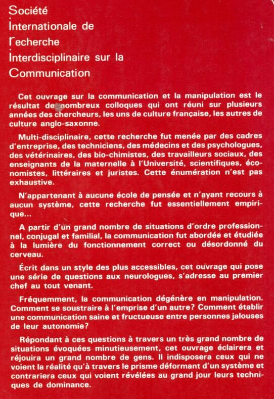 SIRIC : Société Internationale de Recherche Interdisciplinaire sur la Communication. Voir le 4ème de couve en photo. - Bon Etat Règlement immédiat par PAYPAL : paypal.me/Artlink Virements acceptés par EBAN/BIC. Pour les envois internationaux, il est préférable de vous renseigner au préalable auprès de nous afin de connaître les frais de ports effectifs. Les envois se font uniquement en point relais MONDIAL RELAY pour les pays suivants : Allemagne, Autriche, Belgique, Espagne, Italie, Luxembourg, Pays-Bas, Pologne, et Portugal. Merci de nous indiquer en retour le point relais choisi ainsi que votre numéro de téléphone mobile pour assurer le suivi du colis. . Une participation peut être demandée ponctuellement pour un envoi trop pondéreux. PRIX expédition FRANCE 5,00 = 1kg. Votre versement est bloqué jusqu'à confirmation de bonne réception et conformité. CONTACT 7j/7 - librairie@gmail.com 0685628422. FRANCO DE PORT dès 30 euros d'achats en France.