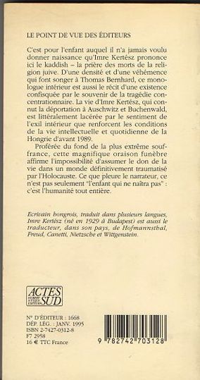 Paris, Actes sud, s.d. ; grand in-12, broché, couverture illustr. Traduit du hongrois par NataliaZaremba-Huzsvai et Charles Zaremba.
