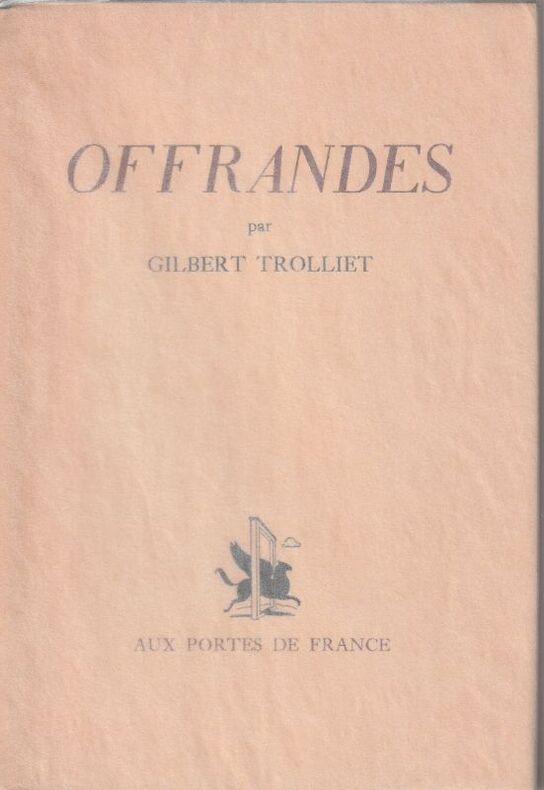 Porrentruy. Aux Portes de France. 1944. In-8° broché. Couverture rempliée. 59 pages. E.O. Exemplaire de présent sur vélin fin, non numéroté. Envoi autographe signé de Gilbert Trolliet. Bel exemplaire.