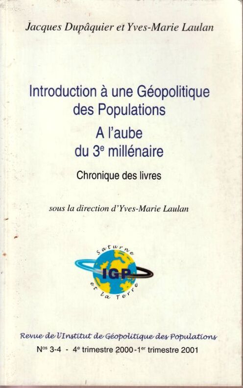 Revue de l'institut de géopolitique des populations. N°3-4. 2001. In-8°, br. 201 pages. Propre et sain.