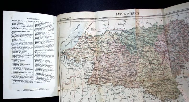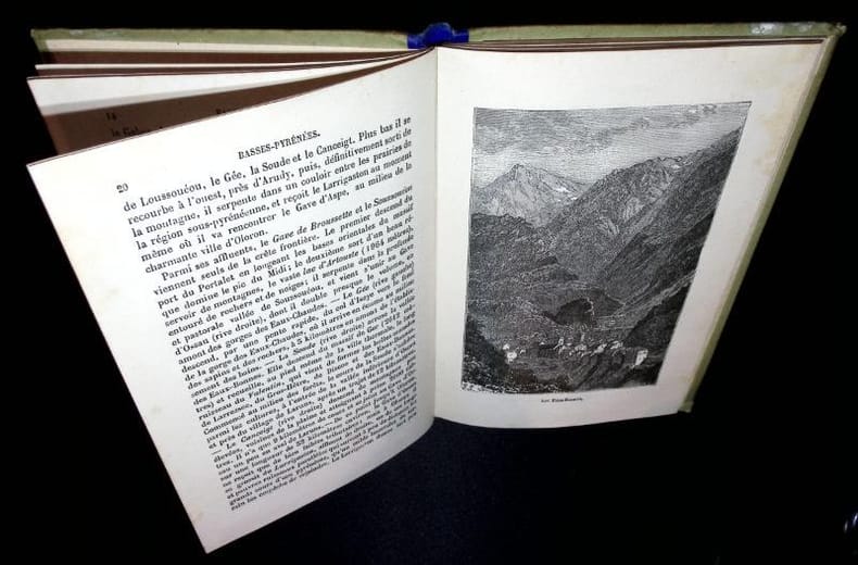 Paris chez Gustave Barba in-4. Sans date. relié. (milieu XIXème). Petit In-4 (290x200 mm). Exemplaire relié Demi-Cuir Dos lisse titré en lettres dorées. Géographie histoire administration et statistique.Isère Charente Morbihan Loir-et-Cher Allier Cotes-du-Nord Ariège Finistère Hautes-Alpes Basses-Pyrénées Marne Haute-Vienne Tarn Aube Maine-et-Loire Pyrénées-Orientales Basses-Alpes Aude Haute-Marne Dordogne.Gravures et tableaux en noir.Reliure en bon état général un peu frottée. Intérieur propre avec peu de rousseurs. Poids : 890 gr