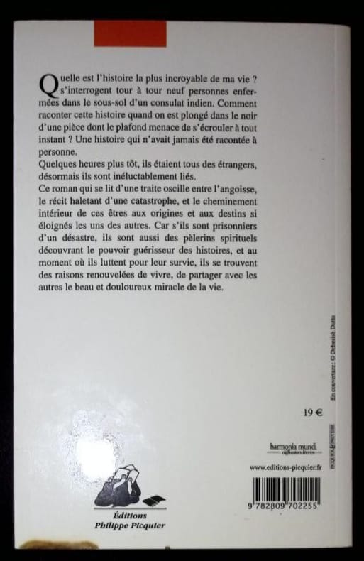 Prises dans un tremblement de terre, neuf personnes se retrouvent coincées au service des visas d'un consulat indien aux États-Unis. Dans cette pièce plongée dans le noir, dont le plafond menace de s'écrouler à tout instant, chacun s'interroge sur les raisons qui l'ont amené ici. Après s'être organisés pour leur survie, pour oublier la peur qui les ronge, ils racontent tour à tour l'événement qui a le plus marqué leur vie. Une histoire qu'ils n'avaient racontée à personne. Quelques heures plus tôt, ils étaient tous des étrangers ; ils sont désormais inéluctablement liés.Ce roman qui se lit d'une traite oscille entre l'angoisse, le récit haletant d'une catastrophe, et le cheminement intérieur de ces êtres aux origines et aux destins si éloignés les uns des autres. Franco de port France jusqu'à 30 euros. MONDIAL RELAY privilégié et pays suivants desservis : Portugal, Pologne, Espagne, Allemagne, Autriche, Pays Bas, Luxembourg, Italie, Belgique. Toutes les étapes de votre achat sont accompagnées. Achat, estimations et listages France / Suisse (sur rdv).