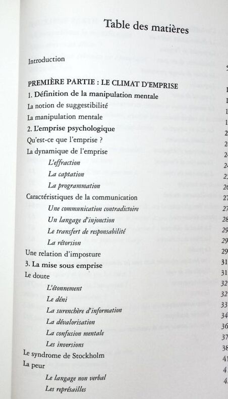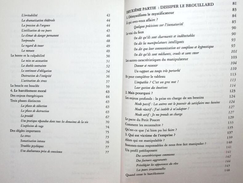 Les solutions existent ! La manipulation mentale fait peur et fascine à la fois ! Elle est de plus en plus présente dans la vie quotidienne : chantage affectif familial, jeux de pouvoir au travail, domination individuelle dans le couple, forte influence d'un ami... Il existe une catégorie d'individus nuisibles et destructeurs dont le but reste le même à travers les siècles : satisfaire leurs priorités à nos dépens. Leurs techniques - simples et sophistiquées à la fois - sont d'une redoutable efficacité. Ainsi, de nombreuses personnes vivent une relation d'emprise ou de harcèlement sans même le savoir. Elles sont angoissées, stressées, désorientées, parce qu'un manipulateur dans leur entourage, tel un vampire, les vide de leur énergie. C'est pour ces victimes d'emprise et de manipulation au quotidien que j'ai écrit ce livre. Franco de port France jusqu'à 29 euros iclus. PAYPAL immédiat. MONDIAL RELAY pour : FRANCE, Portugal, Pologne, Espagne, Allemagne, Autriche, Pays Bas, Luxembourg, Italie, Belgique. Toutes les étapes sont accompagnées. Achat, estimations et listages (Papiers, Archives, monographies, arts et métiers, sciences humaines et bibliophilie) France / Suisse (sur rdv).