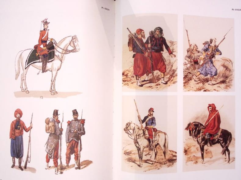 Tchou, Bibliothèque des introuvables, collection l'Algérie d'autrefois, 2002. Fort in quarto sous étui illustré en couleurs, reliure pleine toile bleue marine estampée du titre en doré, 29pp - XXXIII - (avant propos) - 110 pp. de table + 354 planches de reproductions. Très bon état à neuf. signet,