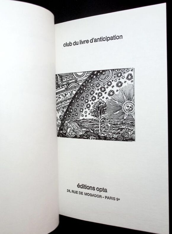 Editions OPTA, Club du livre d'anticipation, 1976 (N° 64). In-8°, reliure pleine toile verte dite "au météore", complète de son rhodoïd, contre plats illustrés, ill. couleur en manière de frontispice, 402 pages. Très agréables sous tous angle (très bon état à neuf)