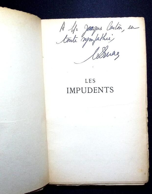 Paris, Plon, 1943. In-12°, broché, 246 pp. Édition Originale enrichie d'une dédicace de Marguerite Duras; exemplaire du service de presse (pas de grand papier). Pagination jaunie (années 1940) fragilité en pied de plat, exempt de rousseurs, non gauchi.