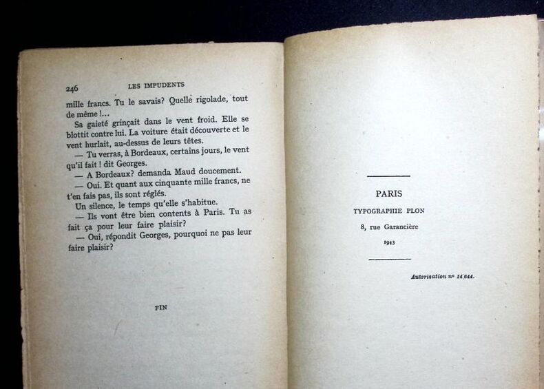 EDITIONS PLON 2026 2026. Marguerite Duras: les impudents/ Editions Plon 1943 . Marguerite Duras: les impudents/ Editions Plon 1943
