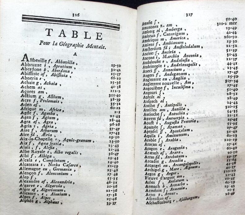 La Californie est une isle et le père Buffier un poëte :" L'Amérique du Nord par l'isthme Panama" Se divise du Sud Kebek en Canada," Baston avec Charlston en nouvelle Angleterre : " Le fort S. Augustin dans la Floride terre:" Santafé capitale au Mexique nouveau ;" Et la nouvelle Espagne a pour chef Mexico.".Les vers de la Géographie Universelle se retrouvent à la fin de l'ouvrage réunis, après avoir été dans le corps du livre mis en regard des contrées décrites.Suivi de la Géographie Mentale.