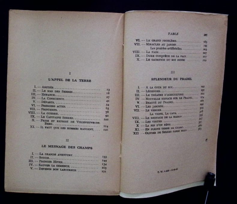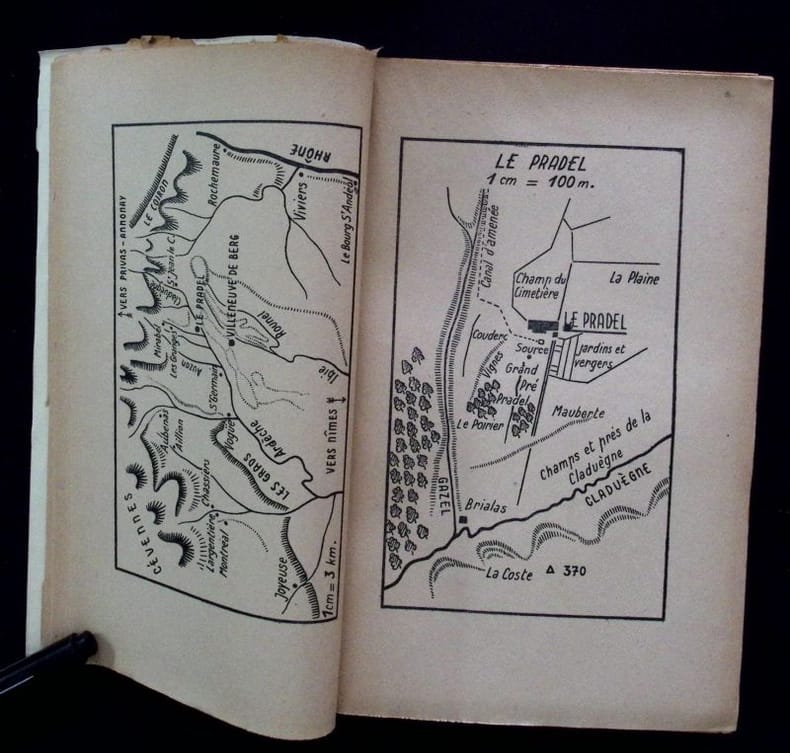René Julliard - Collection SEQUANA " Les cahiers Ruraux" (N° 2) , 2 juillet 1942. In-8° couronne, broché, couverture souple ill. en bruit de fond du feuillage orangé de la coll. 383 pp. cartes frontispices des Cévennes et en particulier du Pradel. Exemplaire sur papier ordinaire des années de guerre lequel est fané voire cassant. Très propre, dans une tenue carrée, vignette d'inventaire en garde. Ment° de 13 ème Mille.
