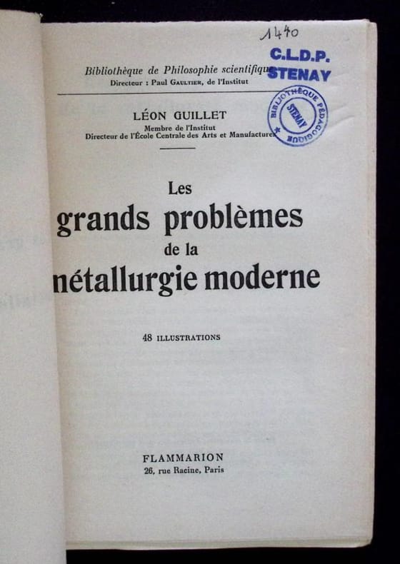 FLAMMARION. 1943. In-8. Broché. Etat d'usage, 1er plat abîmé, Dos plié, Intérieur frais. 288 pp., manque le coin supérieur du 1er plat, légères déchirures sur ses tranches- 1 PHOTO DISPONIBLE.. . . . Classification Dewey : 669-Métallurgie