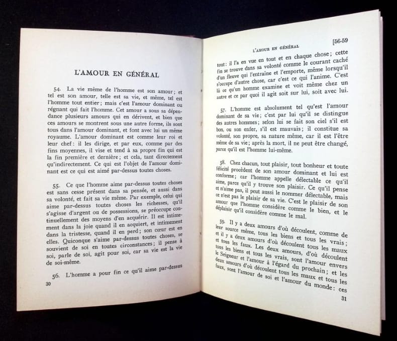 Edition originale établie par Dailland de la Touche. Emanuel Swedenborg (1688-1772) se fit d’abord un nom comme un des plus grands ingénieurs et naturalistes suédois de son temps. Pris de vertiges et de visions à partir de 1736, affirmant être en communication avec les esprits et les anges, il finit par abandonner sa carrière scientifique en 1747 pour se consacrer exclusivement à la mission qu’il s’assigna de révéler le sens spirituel de la Création où seul compte l’Amour divin, de faire connaître le monde céleste, et de proposer une évolution rationnelle de l’humanité vers l’état de pur esprit. Habile à diffuser ses idées à travers ses publications, il acquit bientôt une célébrité européenne. Sa condamnation comme hérétique en 1769 n’empêcha pas la création d’une véritable « église » autour de ses idées, ni même, plus largement, une influence sur les premiers mouvements romantiques. Caillet, III: 10490 : ‘Sinon le plus complet, du moins le plus facile des exposés de la doctrine de Swedenborg’.