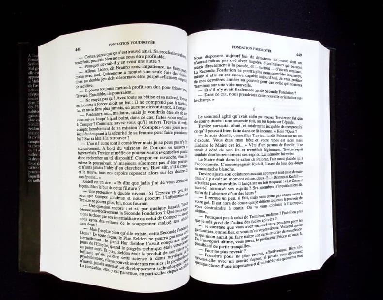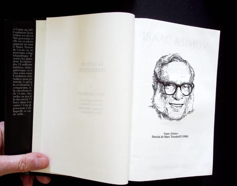 Le Club, février 2000. Deux forts volumes non séparés dans un plein cartonnage d'éditeur et sous jaquette. Format 17.5 x 20.5. Très bon état à neuf. Prélude à Fondation - L'aube de Fondation - Fondation : Préface de Jacques Goimard, anthologiste de science-fiction et de fantastique français : XXXVII-1011 et VI (chronologie de F.)-1166. Trad. de Jean Rosenthal. Complet de la saga.