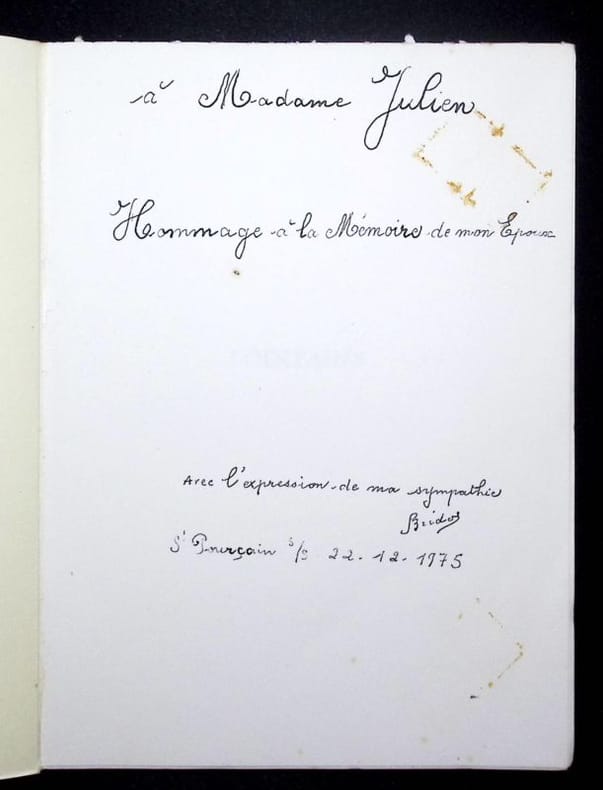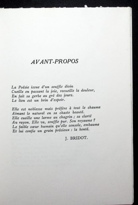 Editions des Cahiers du Bourbonnais, 1975. Livret in-12°de 84 pp. dos muet ainsi que le se cond plat. Dédicace émouvante de l'épouse de Jean Bridot. Préface de Lucien Gachon.