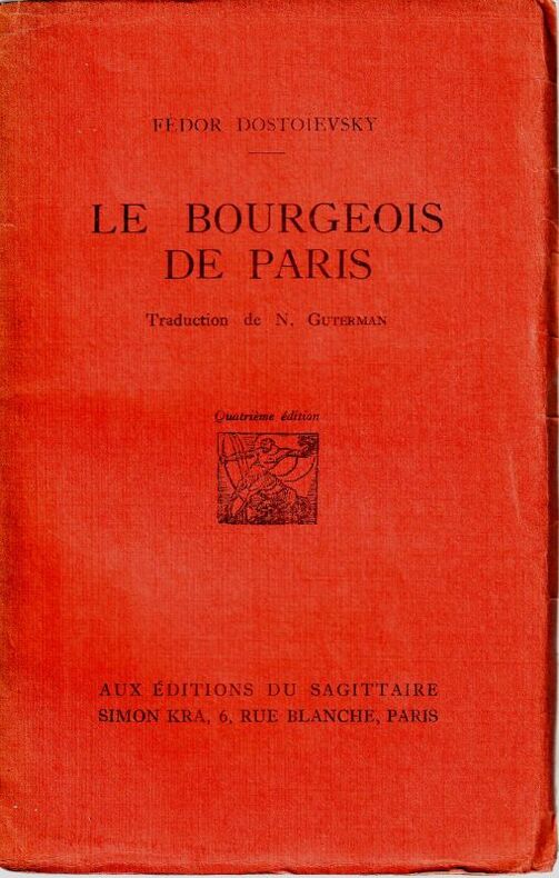 Sagittaire / Simon Kra In-8 Couronne , couverture éditeur couleur brique , 167 pages , partiellement coupé , bel exemplaire , frais . ÉDITION Originale de la traduction Française avec mention fictive de quatrième édition , traduction de Guterman avec envoi de celui-ci à Léon Bérard en Hommage. Couverture passée.