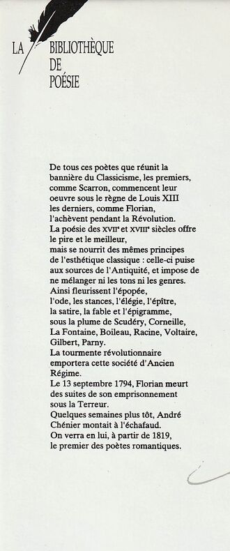 La Bibliothèque de la Poèsie / France Loisirs, 1994 - cartonnage bleue marine , plat portant titre «Bibliothèque de poésie» à l'or et manuscrit , ensemble sous jaquette illustrée au format 150 x 220mm , dense, signet, ensemble à l'état de neuf.