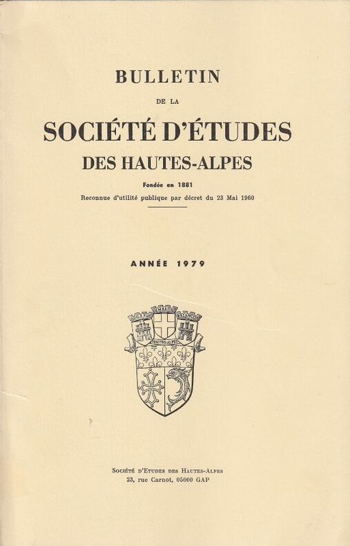 Bulletin de 102 pages, format 165 x 250 mm, illustré, Société d'Etudes des Hautes-Alpes (Gap) fondée en 1881, publié en 1979