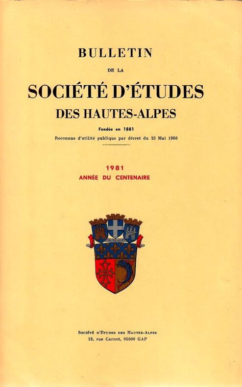 Société d'études des Hautes Alpes Broché , 16x24,5, couverture claire , non glacée, bel exemplaire de 279 pages . Sommaire sur le second cliché ci dessus.
