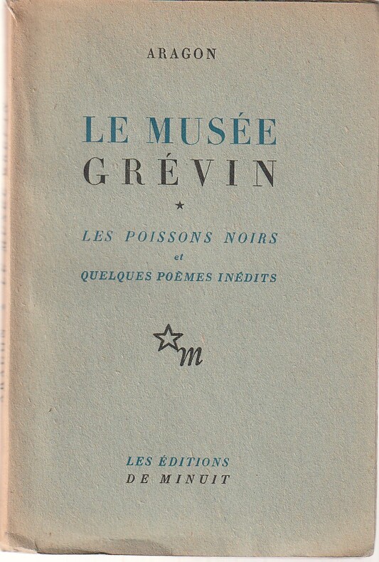 Les éditions de Minuit - 1946. In-12 (120 x 180cm ) broché. Plats en papiers fort imprimes en bleu et noir, 117 pp.Bel exemplaire , un peu gauchi tout de même sans plus. Édition en partie Originale -"Les Poissons Noirs" apparaissent ici pour la première fois. Le musée Grevin quant à lui est paru en 1943 sous le pseudonyme de François la Colère.