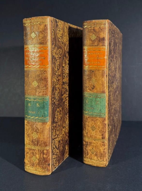 A Paris, Chez Paul Dupont, 1835 1835 ., 774 p. et 784 p., dont supplément contenant les mots nouveaux en usage depuis la Révolution. 2 volumes in-4, demi-basane, dos plat orné, pièces de titre et de tomaison, tranches jaunes. Rousseurs en début de volumes, coins usés, mors fendu au 2nd volume. Quelques frottements.