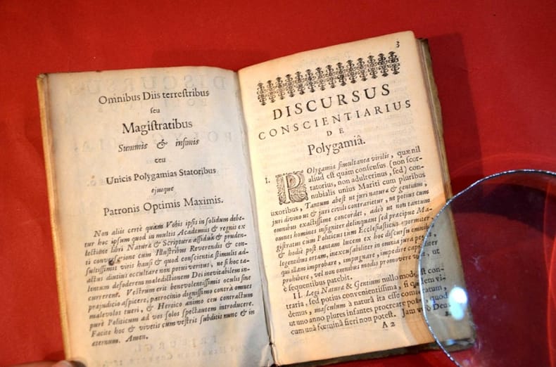 1676 Fribourg i. Br. Cunrath,, 173 pp in-12, vélin de l'époque. Éloge de la polygamie par un Pasteur qui a exercé en Allemagne et dans divers pays scandinaves. En continuel conflit avec les autorités, il lui fut interdit de revenir au Danemark sous peine de punition définitive ! Il enseigne dans son ouvrage que la polygamie ne doit pas seulement être permise, mais est un devoir naturel. L'ouvrage fut condamné au feu.