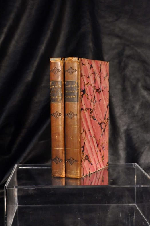 Précieux exemplaire dédicacé par l’auteur à sa cousine la comtesse de Clérembaut revêtu d’une fine et élégante reliure romantique. Paris, Urbain Canel, 1826. 2 tomes en 2 volumes in-8 de : I/ (1) f.bl., (2) ff., 411 pp., (1) p.; II/ (2) ff., 491 pp., (1) p. Reliés en plein veau glacé, filet doré et diverses roulettes à froid encadrant les plats, large motif décoratif frappé à froid au centre des plats, dos à nerfs finement ornés, coupes décorées, tranches dorées, rares rousseurs. Reliure de l’époque. 202 x 125 mm.
