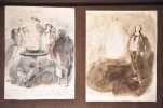 Des lieux et dates grattés, les derniers feuillets renforcés à la pliure, sinon bel état de conservation. *** ENGLISH TRANSLATION BELOW *** Lovely notebook illustrated with 23 beautiful original watercolors and 3 pages of sketches. Main themes : scenes with people, landscapes, branches of fruit trees, flowers, buildings, etc. Pretty watercolor charts on the underlays and the endpaper. Places and dates scratched, the last leaves reinforced at the fold, otherwise very good condition. - Clients Livre Rare Book : Les frais postaux indiqués sont ceux pour la France métropolitaine et la Corse, pour les autres destinations, merci de contacter la librairie pour connaître le montant des frais d'expédition, merci de votre compréhension. Livre Rare Book Customers : The shipping fees indicated are only for France, if you want international shipping please contact us before placing your order, thank you for your understanding. - Frais de port : -Colissimo France 9,5 € -Colissimo International (Union Européenne + Suisse : 20 €) (Reste du Monde : 40 €)