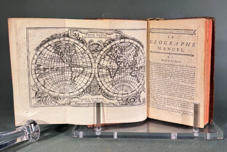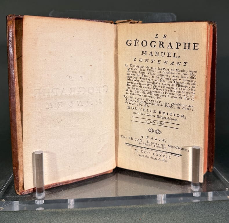 Nouvelle édition, A Paris chez le Jay, 1777 In-18, de 396pp en plein veau marbré, dos à quatre nerfs orné de fleurons, tranches rougies. Nouvelle édition de ce manuel de poche, utile au commerce, illustrée de six cartes dépliantes.Exemplaire agréable en reliure de l'époque.Agréable exemplaire.