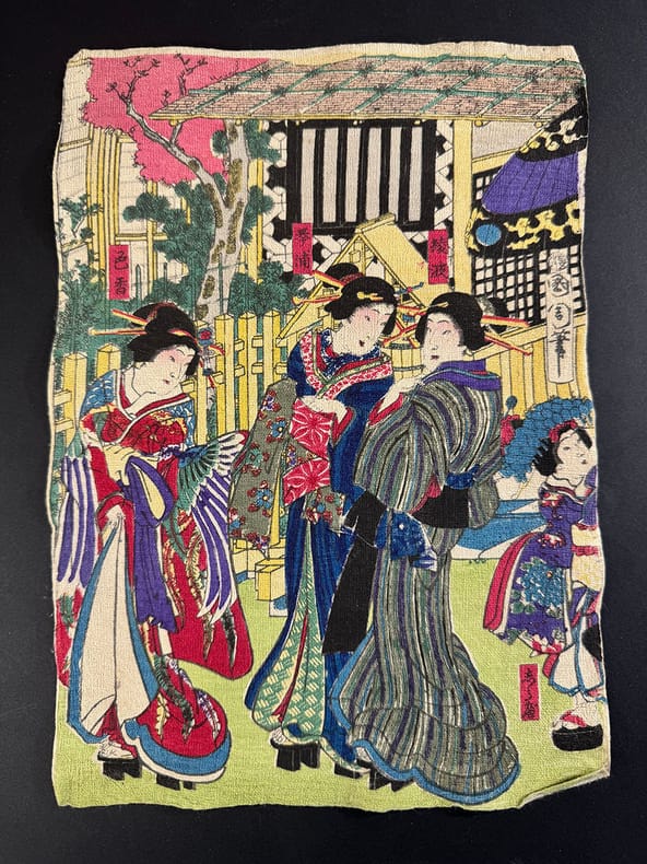 1890 Estampes japonaises sur papier traditionnel Hô-shô, fin XIX°. En moyenne, 19x26cm, aux coloris vifs et chatoyants représentant des scènes de genre. Vues d extérieur, jardin, activités domestiques, geishas. Toutes d une qualité vraiment remarquable. Au choix, 80 pièce, 140 les deux.