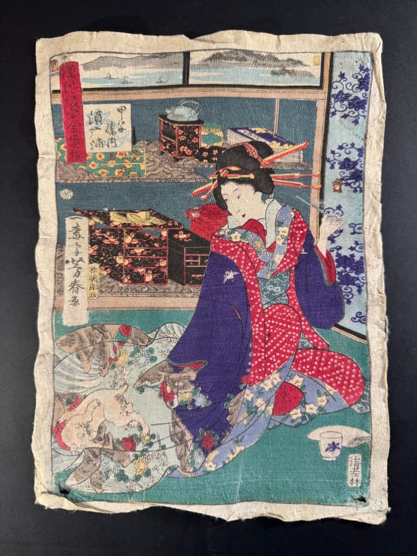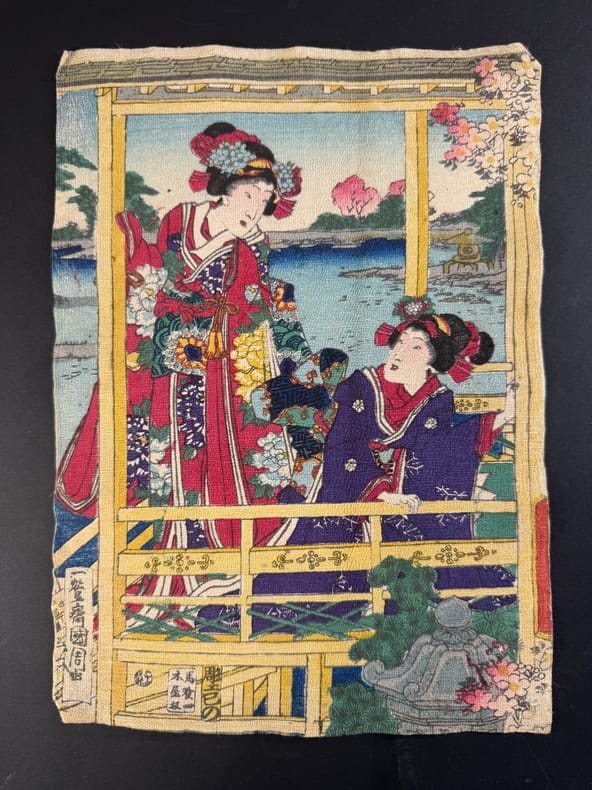 1890 Estampes japonaises sur papier traditionnel Hô-shô, fin XIX°. En moyenne, 19x26cm, aux coloris vifs et chatoyants représentant des scènes de genre. Vues d extérieur, jardin, activités domestiques, geishas. Toutes d une qualité vraiment remarquable. Au choix, 80 pièce, 140 les deux.