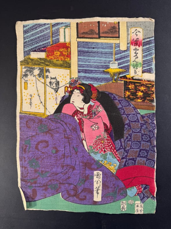 1890 Estampes japonaises sur papier traditionnel Hô-shô, fin XIX°. En moyenne, 19x26cm, aux coloris vifs et chatoyants représentant des scènes de genre. Vues d extérieur, jardin, activités domestiques, geishas. Toutes d une qualité vraiment remarquable. Au choix, 80 pièce, 140 les deux.