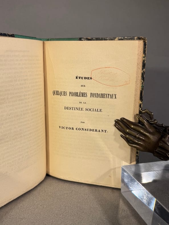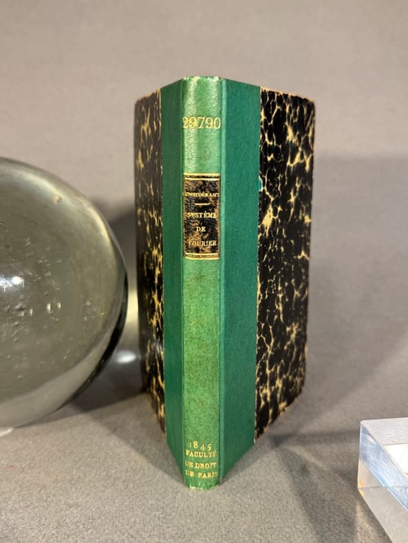 Paris, A la librairie sociétaire, bureaux de la Démocratie Pacifique, 1845 In 12 en demi cartonnage vert, pièce de titre en maroquin noir. 114pp, XIV