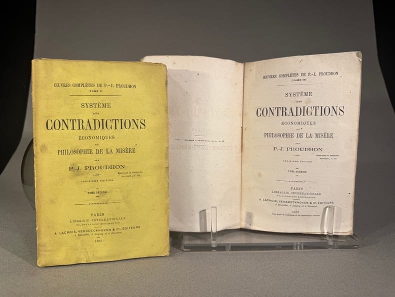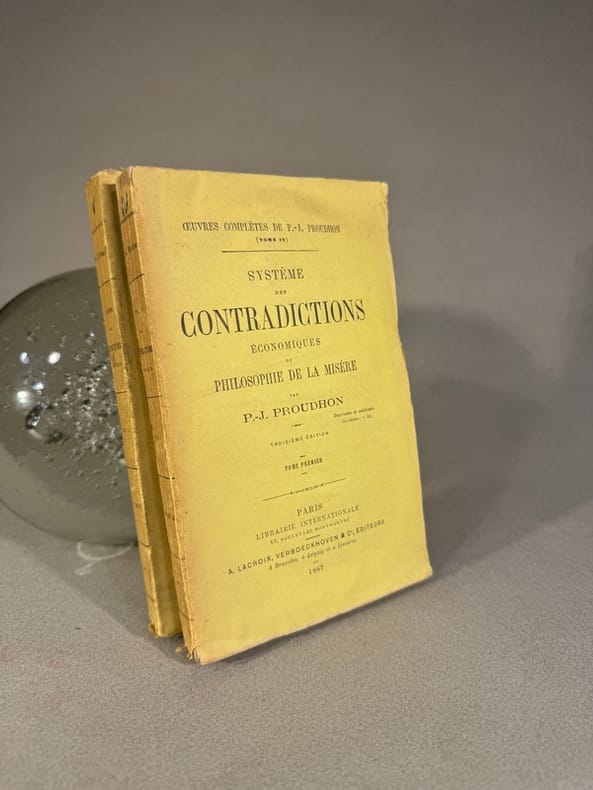 Paris, Librairie internationale, 15, boulevard MontmartreA. Lacroix, Verboeckhoven & Cie, éditeurs à Bruxelles, à Leipzig et à Livourne1867 Deux tomes In 12 broché, couverture jaune impriméOuvrages extraits de la série « œuvres complètes de P.-J. PROUDHON Tomes V & VI