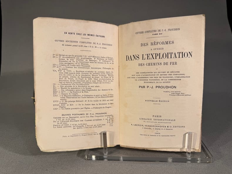 Paris, Librairie internationale, 15, boulevard Montmartre, A. Lacroix, Verboeckhoven & Cie, éditeurs, À Bruxelles, à Leipzig et à Livourne1868 In 12 broché, couverture jaune impriméOuvrage extrait de la série « œuvres complètes de P.-J. PROUDHON Tome XII