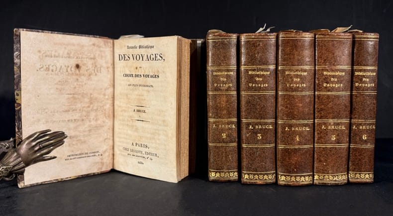 A Paris, Chez Lecointe, éditeur, 1830 1830 7 volumes In 12 en demie basane, dos plat orné de filets, titre et tomaison frappée, intérieur frais. Complet de ses 17 parties et de son « Voyage aux Sources du Nil, pendant les années 1768-1772 par James Bruce » , manque l’atlas.